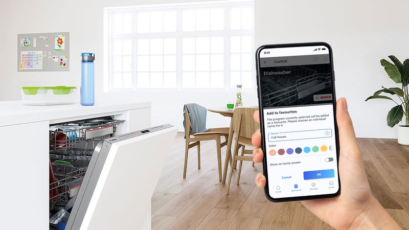 Remote Control is designed to bring your life more freedom and comfort. You can easily do all the controls that can be done on dishwasher via HC app, such as start/pause your dishwasher remotely, select programs and options, set timings and edit dishwasher settings via Home Connect app wherever and whenever you want.