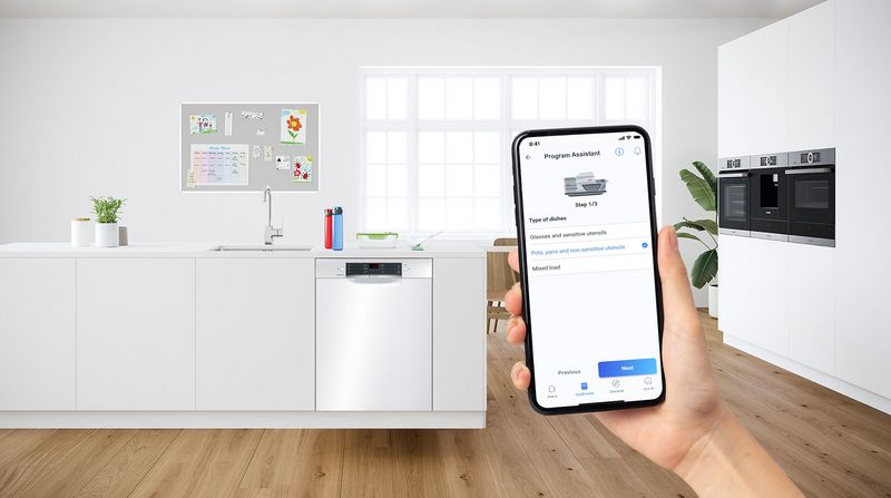 Selecting the right wash programme for your dishwasher can not only be confusing, but can often result in less than perfect cleaning results. Home Connect with Easy Start Guide function takes the guesswork out of this job and always recommends the right program to you -directly from your mobile device. Every time. And with every wash. The only thing you need to do is enter the degree of soiling and the type and quantity of the dishes or cutlery being washed in your Home Connect app. So you can easily choose the right program and get perfect results, cycle after cycle.