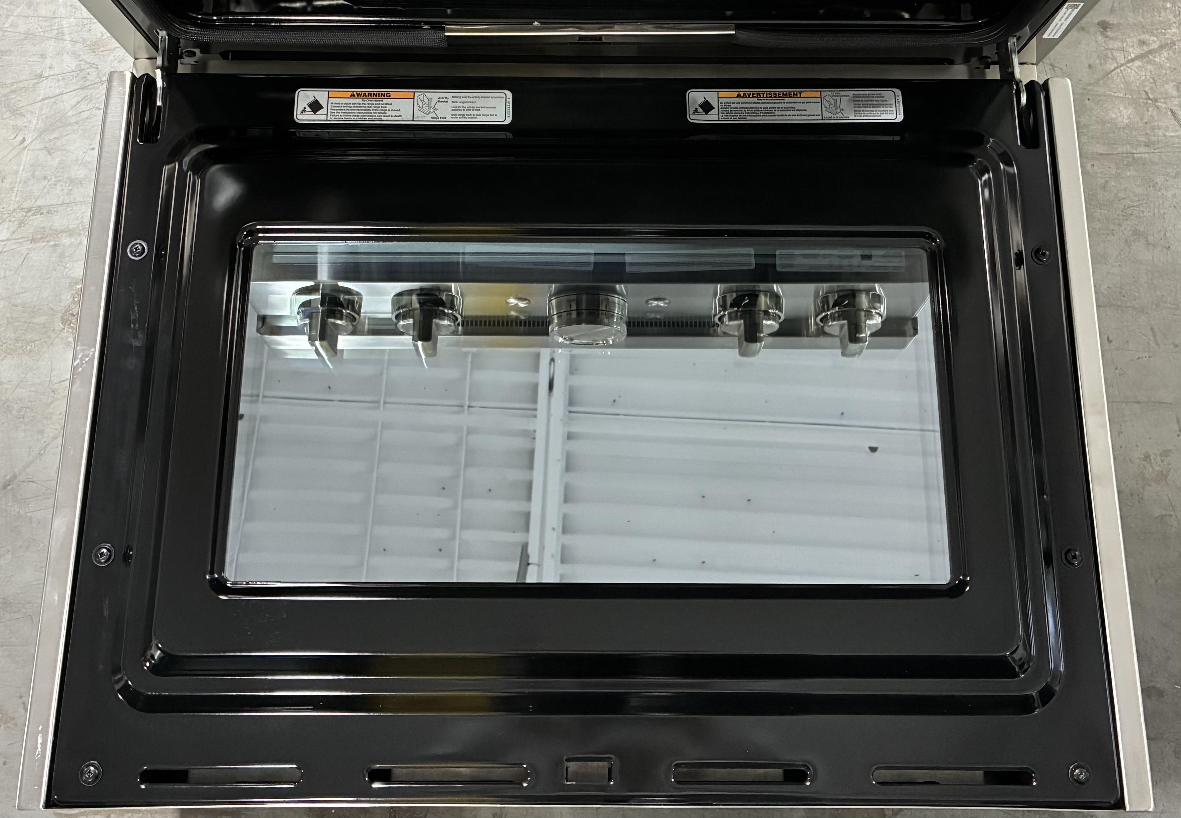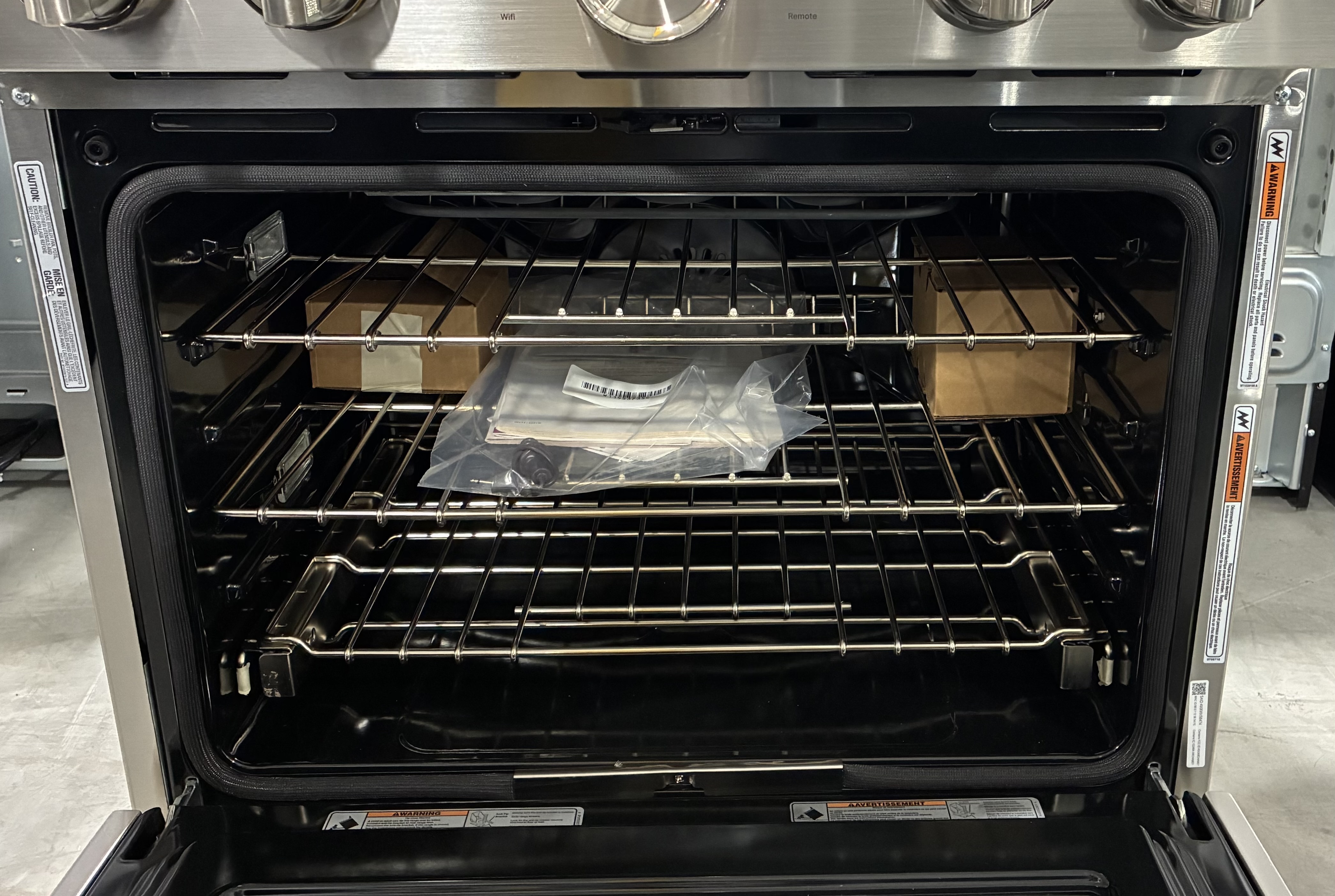 satisfies the needs of the most demanding cooks by combining the precise control of a gas cooking surface with the even baking, roasting and broiling of an electric oven.