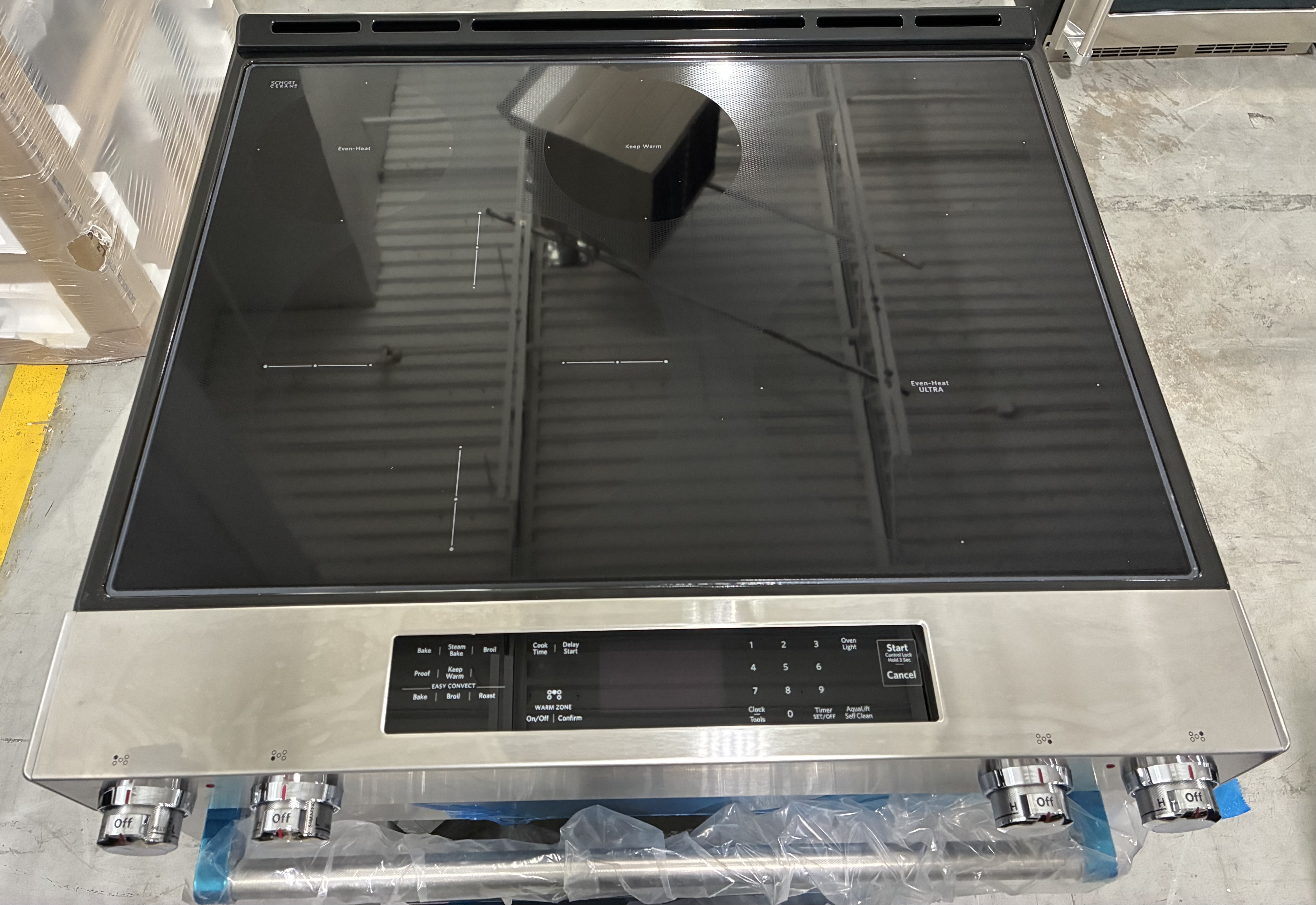 This beautiful electric range produces flawless cooking results with Even-Heat™ True Convection. The unique bow-tie design and convection fan ensure the inside of the entire oven is heated to, and stays at, the perfect temperature. This range also features a Steam Rack that adds additional moisture to the inside of the oven, enhancing cooking results. The oven is 6.4 cu ft., providing an extra-large cooking capacity that’s perfect for preparing multiple dishes at once.