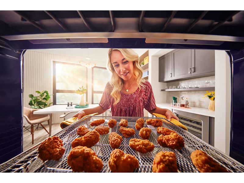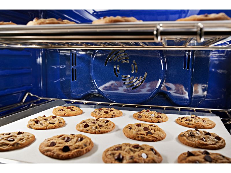 Get the crisp you crave, right from your oven. This 30" Combination Microwave Wall Oven with Air Fry Mode circulates hot air around the included basket to cook with less oil.* Microwave convection cooking turns the microwave into a second oven for small batch bakes like cookies, madeleines and cakes.*When compared to deep frying.