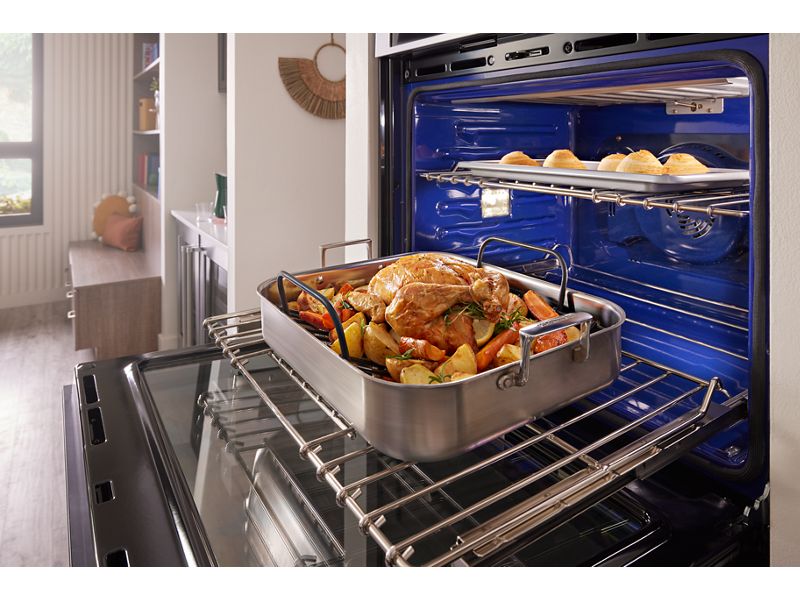 Makes it easy to cook with large or heavy bakeware. Sure-grip handle and smooth roll-out simplify loading and unloading.