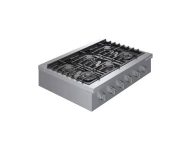 The six burner 36" stainless steel slide-in gas rangetop provides the look and features of a professional-style appliance.