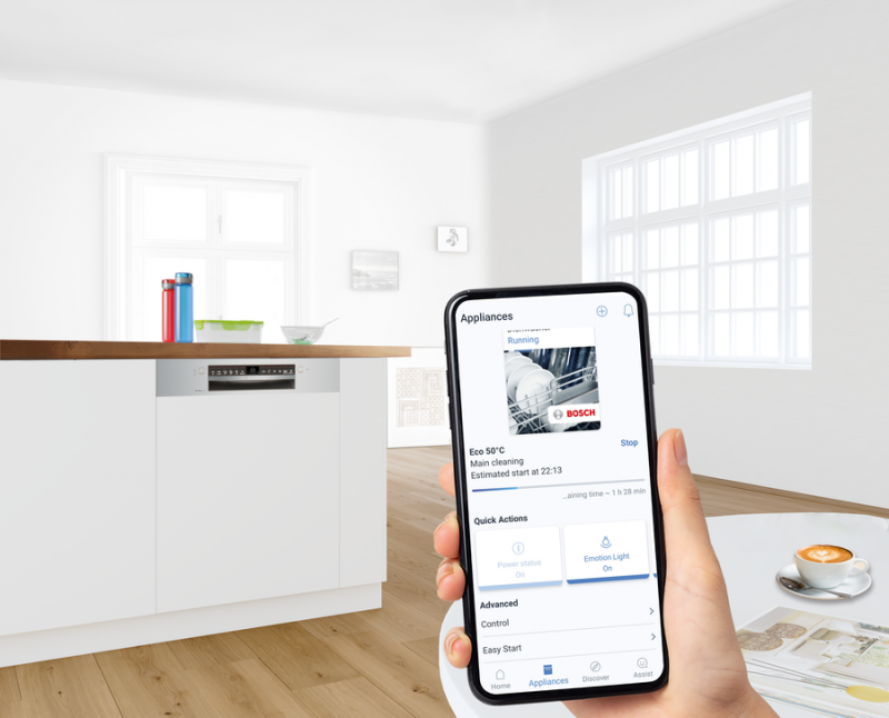Remote Control is designed to bring your life more freedom and comfort. You can easily do all the controls that can be done on dishwasher via HC app, such as start/pause your dishwasher remotely, select programs and options, set timings and edit dishwasher settings via Home Connect app wherever and whenever you want.