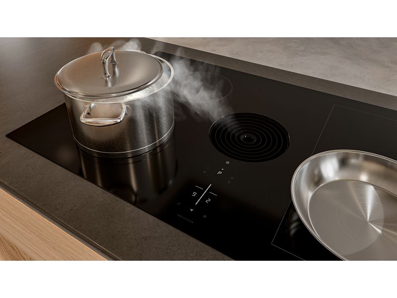 with downdraft ventilation that can adjust automatically to remove odors, steam and smoke 5x faster than steam can rise.