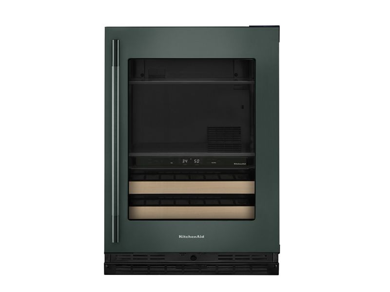 24" KitchenAid Beverage Center with Glass Door and Wood-Front Racks - KUBR524SJP