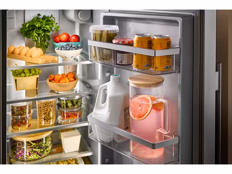 Make room for every grocery run and farmers market haul with this large capacity counter-depth side-by-side refrigerator from KitchenAid brand. Counter-depth design fits with surrounding cabinetry to create a built-in appearance. Panoramic LED Lighting illuminates every angle to keep ingredients in sight and easy to find. And an Exterior Ice and Water Dispenser with Measured Fill allows you to select and dispense the exact amount you need in ounces, cups or liters.
