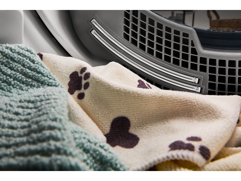 The Maytag® Pet Pro dryer traps and removes loads of pet hair from clothes. The Pet Pro option lifts and captures pet hair from clothes on select cycles and traps it in the lint trap. Extra Power boosts drying power to get thick fabrics drier the first time,* while Advanced Moisture Sensing helps evenly dry loads.Harness the power of steam to help prevent wrinkles and refresh clothes with a steam-enhanced dryer. In the never-ending fight against pet hair, Maytag is ready to conquer pet hair like a pro.*Results may vary based on load size and type.