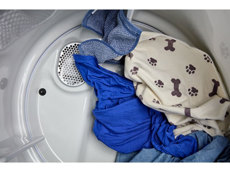 The Maytag® Pet Pro dryer traps and removes loads of pet hair from clothes. The Pet Pro option lifts and captures pet hair from clothes and traps it in the lint trap. Extra Power boosts drying power to get thick fabrics drier the first time,* while Advanced Moisture Sensing helps evenly dry loads.Harness the power of steam to help prevent wrinkles and refresh clothes with a steam-enhanced dryer. In the never-ending fight against pet hair, this Maytag® dryer is ready to conquer pet hair like a pro.*Results may vary based on load size and type.