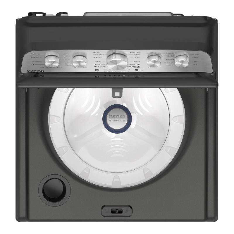 Boost your laundry cleaning power with the Maytag Top Load Washer with Extra Power and Pet Pro Option to break apart tough stains and filter out pet hair from your clothes. Maximize stain fighting abilities by adding Extra Power to any wash cycle, including Quick Wash, for speedy, clean results, while knocking out wrinkles before they start with Wrinkle Prevent.