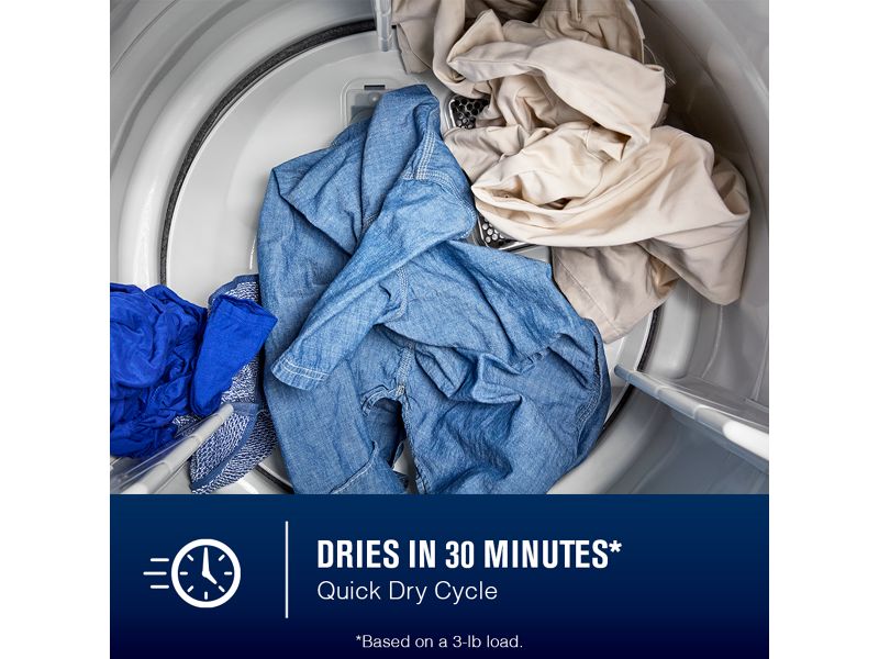 The Quick Dry cycle dries small loads fast. Clothes will be ready before you know it when paired with the Quick Wash cycle.