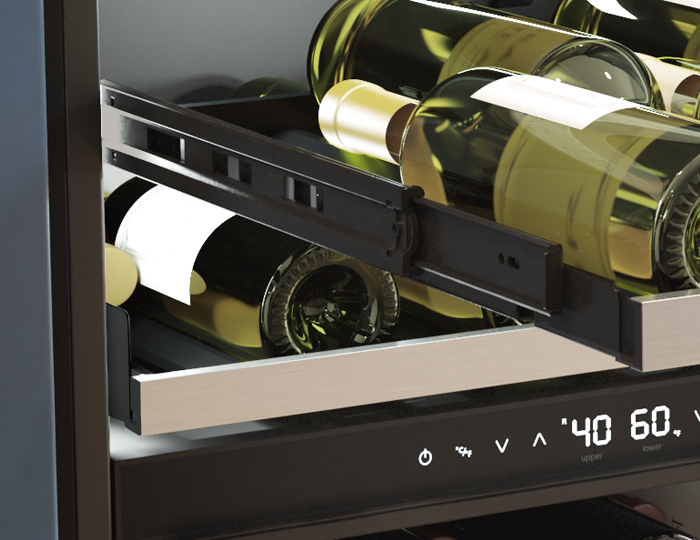 From bubbly to Barolo, store every precious bottle at just the right temperature, the way the pros do it. With the help of the quietest inverter compressor on the market, an easily removable kickplate, soft-close glides on wood racks, improved rack spacing, a magnum-ready top shelf and as much sleek, professional quality design as any kitchen desire, youre ready to serve guests in style. And its good looks fit right in with your other pro-style appliances.