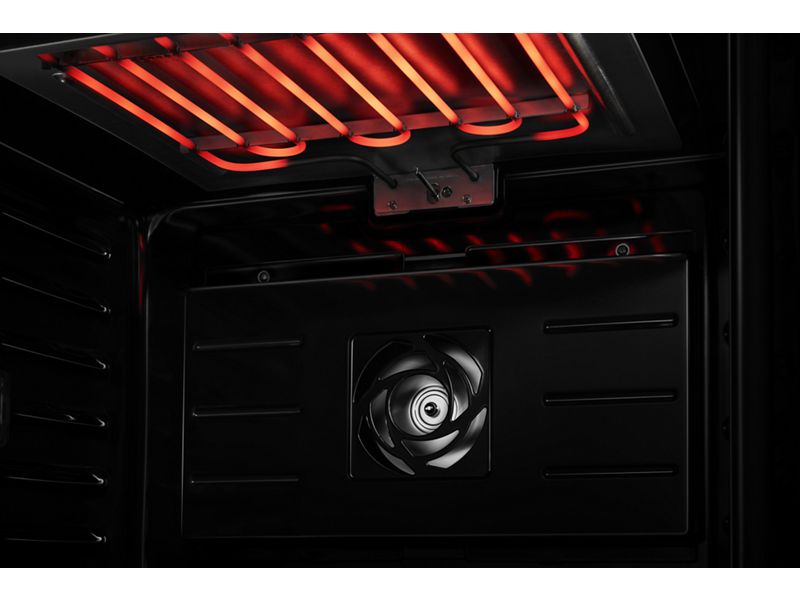 Steady heat generated by a 3,200W element is circulated by whirling metal blades, weaving around every flat tine. Wield your cooking prowess from marbled meats to succulent roasts.