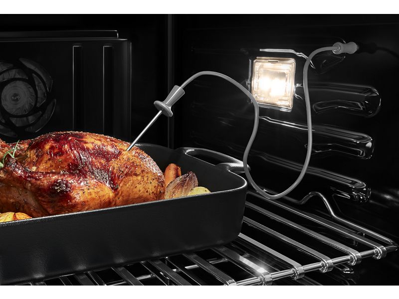 Know when dinner is done without ever opening the door. Internal food temperature readings are visible on the LCD screen or directly in the app.**Appliance must be set to remote enable. WiFi & App required. Features subject to change. For details and privacy info, visit jennair.com/connect.