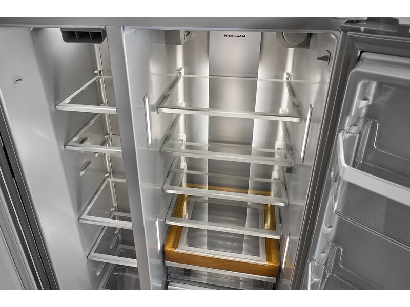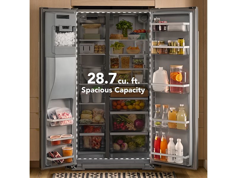 the largest capacity side-by-side refrigerator from KitchenAid brand* makes room for every grocery run and farmers market haul with 28.7 cu. ft. of capacity and specialized spaces for your special ingredients.*Applies to models KRSF336R and KRSF536R.