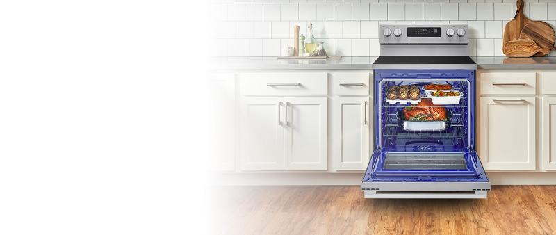 Whether you’re baking large batches of cookies or a 20-lb turkey and the sides for the holidays, this spacious 6.3 cu. ft. oven can fit it all.
