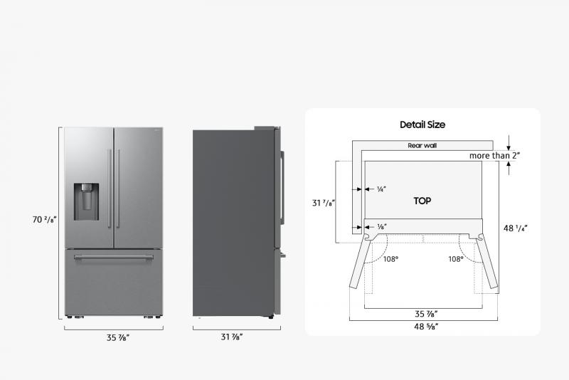 1Up to 0.16" (4mm) clearance required between both sides of the refrigerator and the walls for the doors to open 108°.