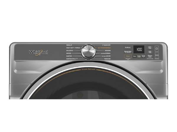 Release wrinkles without rewashing using the Steam Refresh Cycle in this front load gas dryer. It has smart features so you can track progress remotely using the Whirlpool® App, and AI sensors that automatically adjust dry time, to prevent overdrying. READ MORE