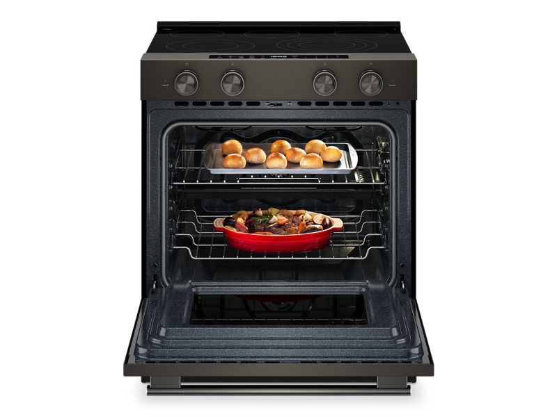 Enjoy a range of possibilities with our most powerful KitchenAid 30-inch Electric Range available. Two Even-Heat™ Hyper Elements offer precise control and the versatility to take on large pots or small pans for various cooking tasks. A WiFi-enabled Smart Appliance featuring Convection Cooking Modes that help you get consistent results with optimal temperatures. A Steam Bake mode works with the included steam rack to provide additional moisture during baking, so you can enjoy Basque cheesecake and other delicious desserts. The range is designed to be personalized with a curated palette of exterior finishes and mixed metal hardware.